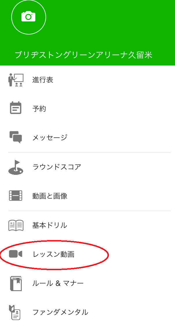 スクールアプリ、レッスンレコーダーの左上「Ξ」ボタンをタップして、レッスン動画をタップすると見ることができます。