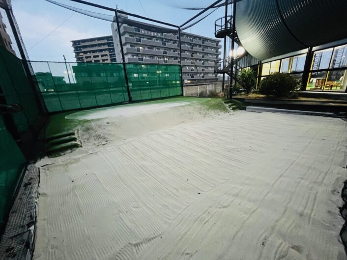 ブリヂストンカンツリー俱楽部と同一の砂を用いた自慢のバンカー練習場です! 有料(詳しくはこちら)ではございますが、上達に向けて非常に役に立つともっぱらの評判です。ぜひこの柔らかさをご体感あれ!