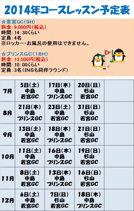 下半期のラウンドレッスン予定表です