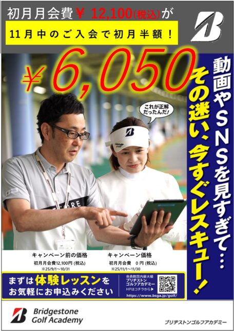 11月に入会するとなんとdouble exclamation初月の月会費通常12,100円税込(101日~31日)が半額6,050円税込(111日~30日)になりますdouble exclamation