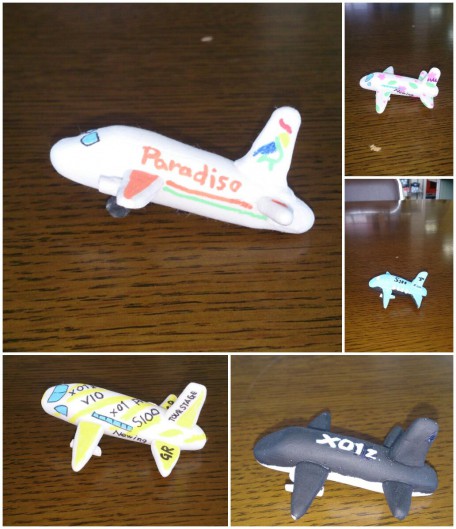 ↓飛行機の粘土細工です。よーくみてください。飛行機には、ブリヂストンボールの文字!!