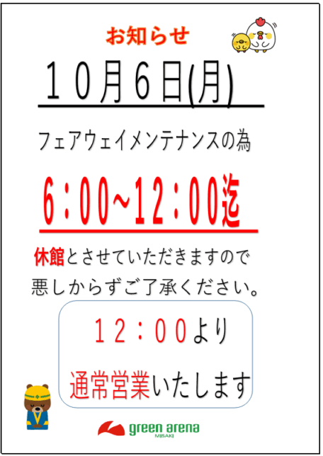 いつもグリーンアリーナ岬をご利用いただき 誠にありがとうございます。