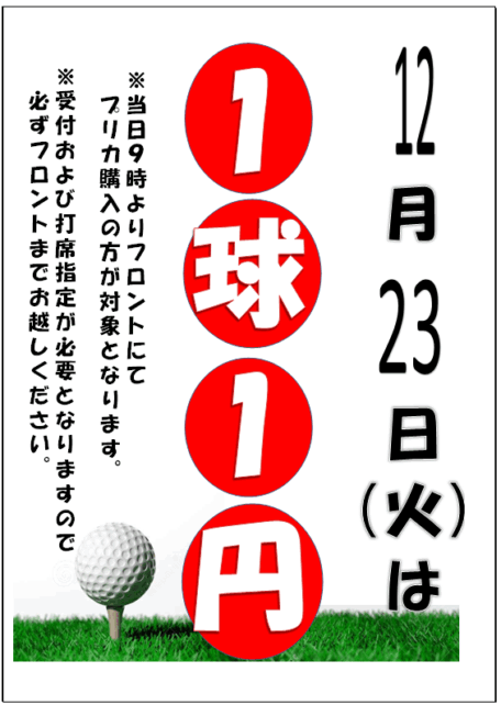 グリーンアリーナ岬では、毎月第4火曜日は、「1球1円デー」を行っています。