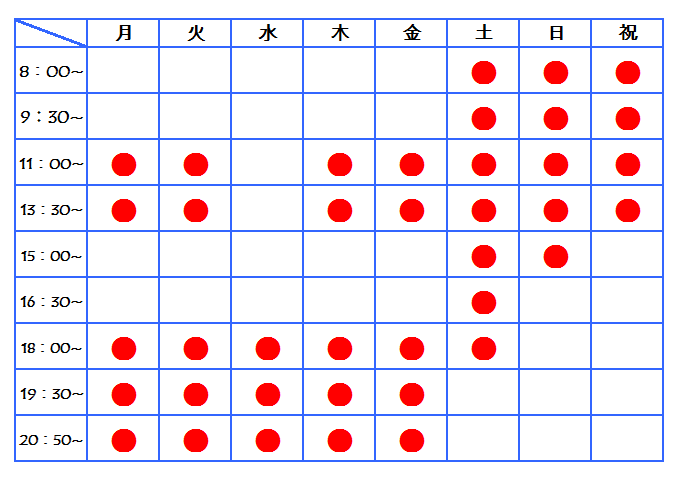 2018/10/18以降のタイムスケジュールを下の通りご案内いたします