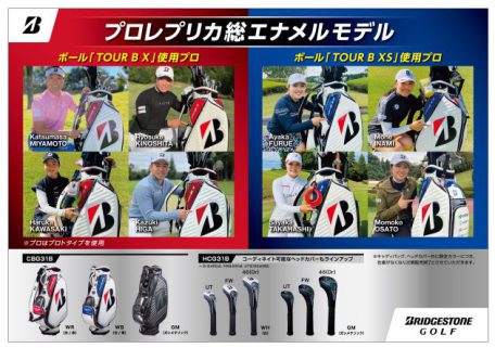 今季モデルは、ボール使用と連動しており、TOUR B Xを使用しているプロはWR(白/赤)を、TOUR B XSを使用しているプロはWB(白/青)を使用し、バッグにもそれぞれ違ったロゴが入っています