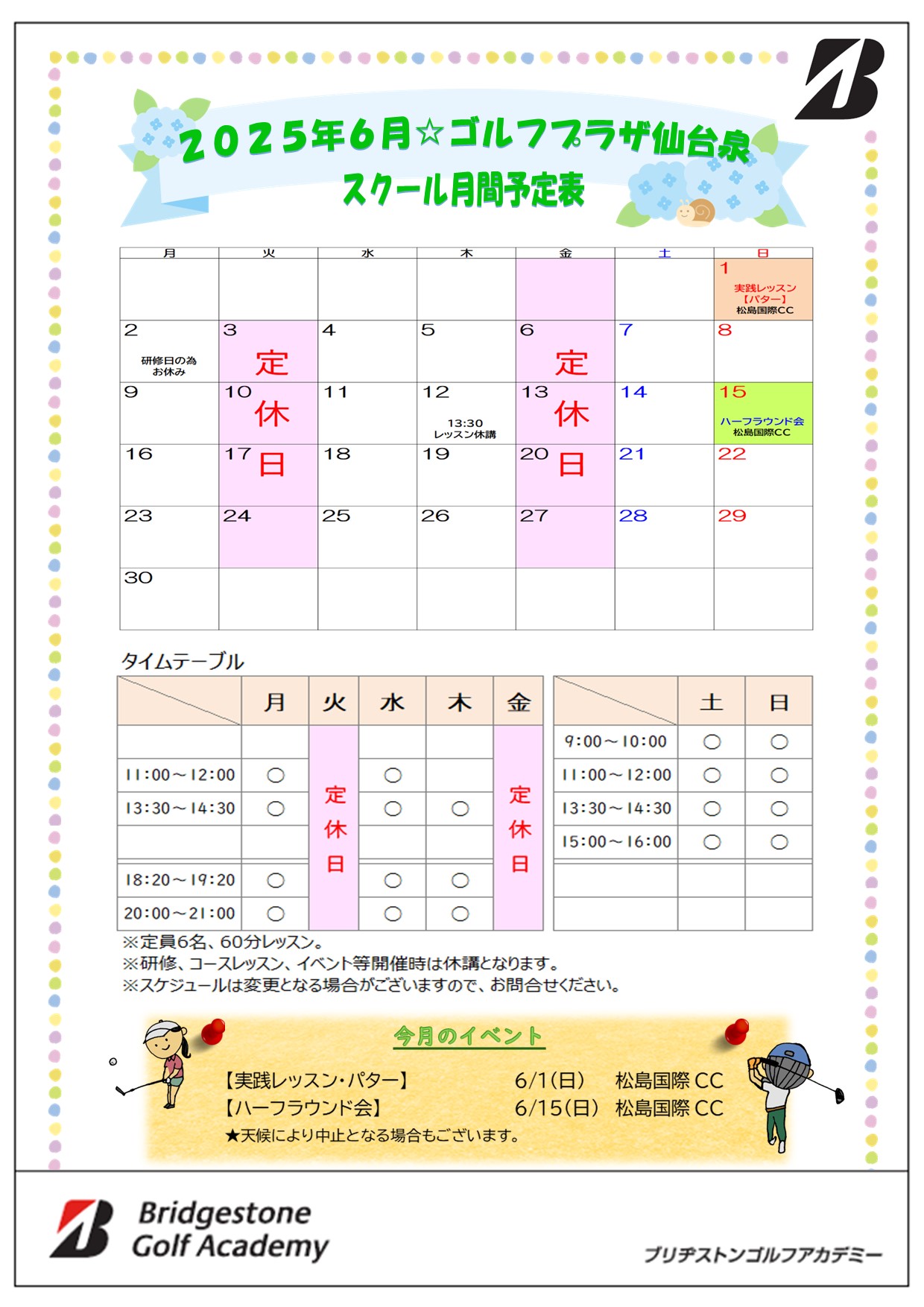 ブリヂストンゴルフプラザ仙台泉ではスクール生募集中です!ゴルフを始めたいけどどうしたらいいかわからない、レベルアップをしたい…等々。ゴルフを頑張るみなさま、まずは体験レッスンからご参加ください