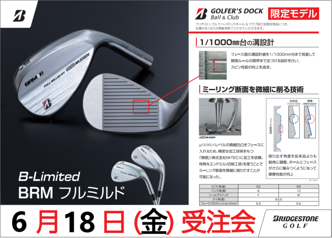 ゴルファーが求めるスピン性能を世界最高峰レベルで追及した 『 B-Limited BRMフルミルド』をぜひお試しください