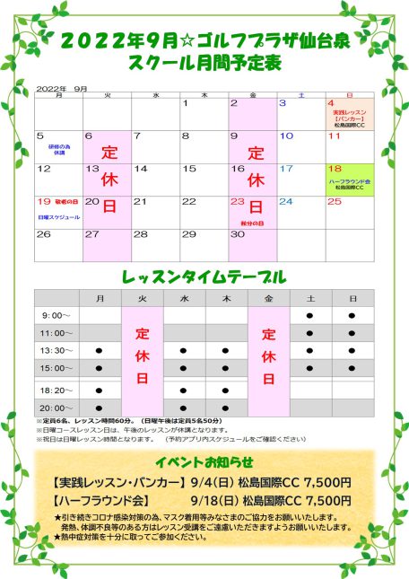 ブリヂストンゴルフプラザ仙台泉ではスクール生募集中です!体験レッスンもありますので、お気軽にお電話ください