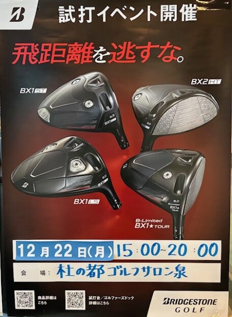 ブリヂストンゴルフプラザ仙台泉より、試打会のお知らせです