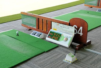 ヘッドスピード、飛距離、ボールスピード、ミート率がわかる測定器設置。