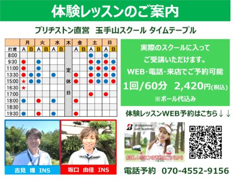 ゴルフプラザ玉手山のスクールは、ブリヂストン直営のブリヂストンゴルフアカデミーです